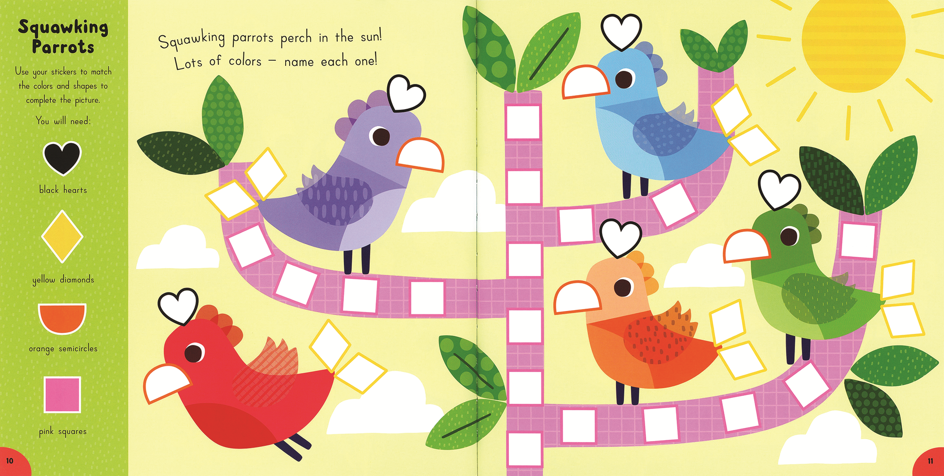 These early learning activity books, with over 500 reusable sticker shapes to match to the pictures, are designed to increase color and shape recognition, as well as support fine motor skills development.