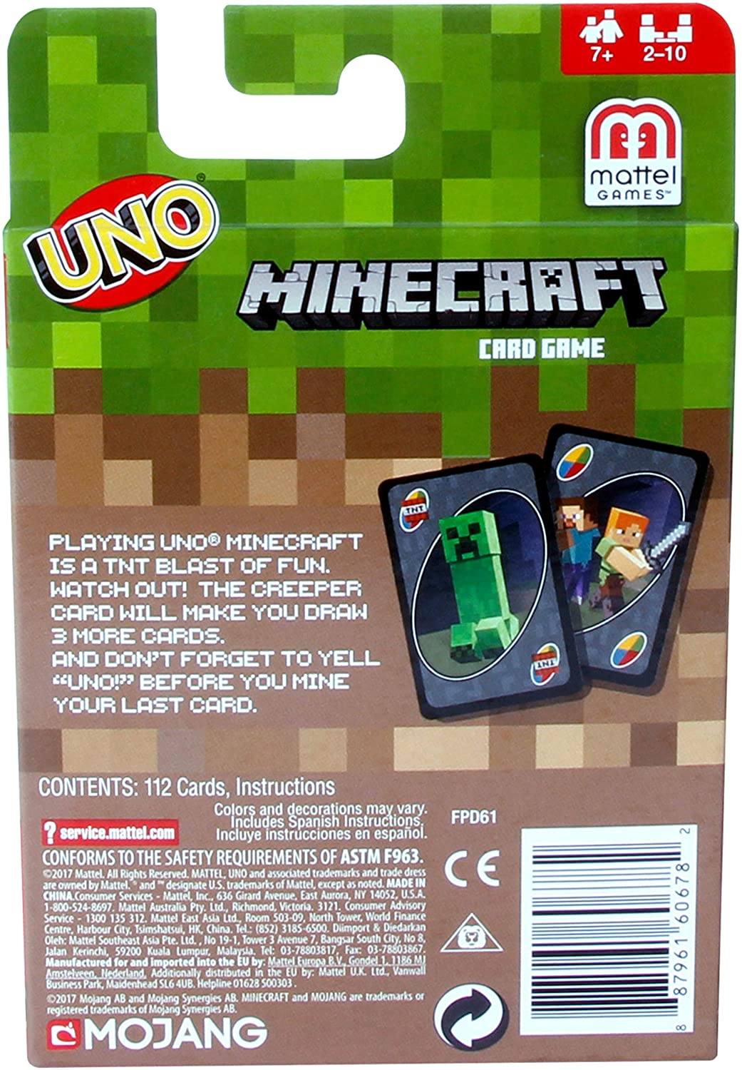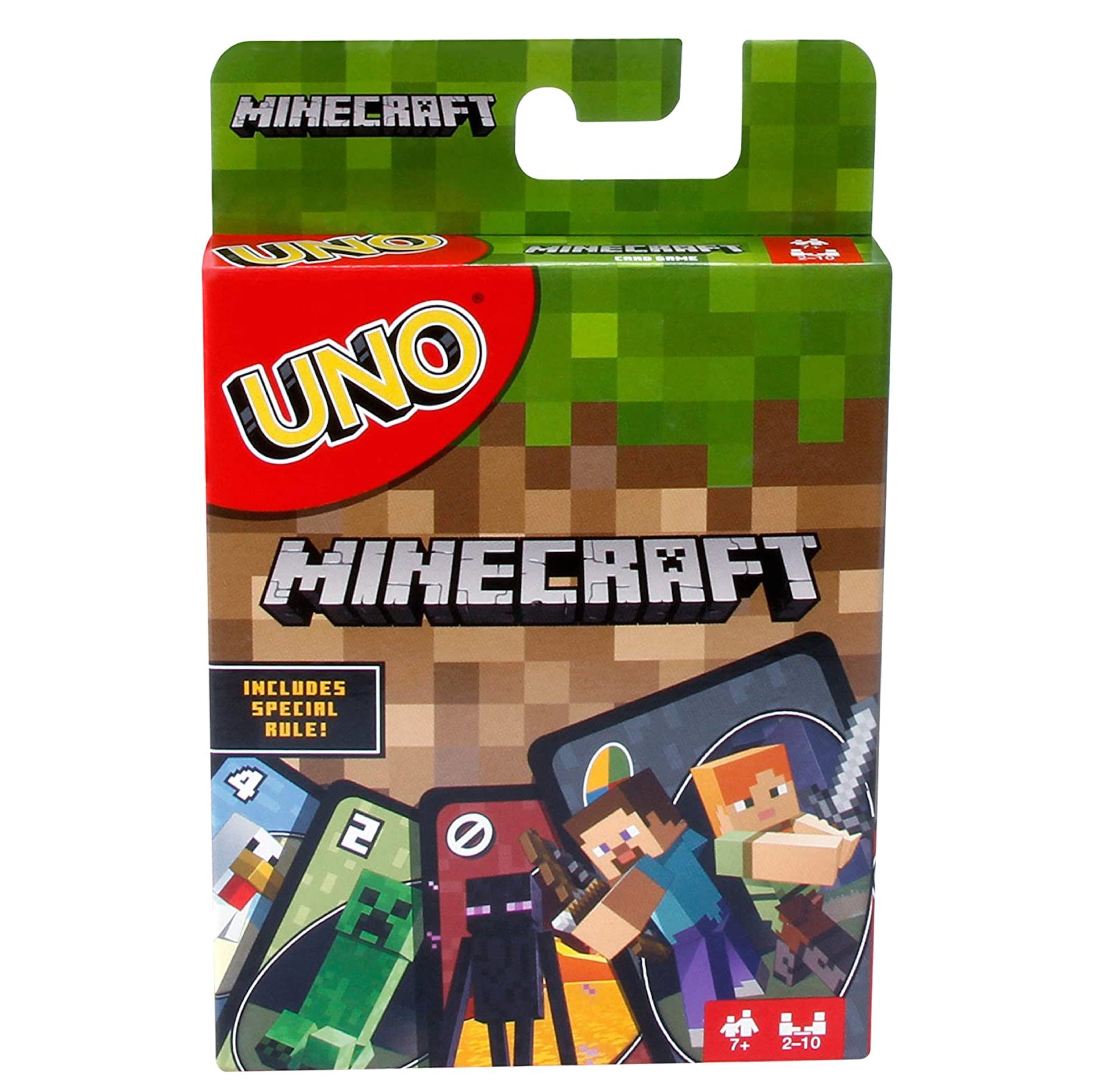 It’s the classic UNO game you know, now with popular Minecraft characters and special Minecraft rule cards! Kids will love matching cards by color or number in a race to get rid of their cards first.